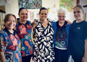 Cassandra Gibbs, Mercy Works’ Indigenous Projects Co-ordinator (centre), with women from Baabayn Aboriginal Corporation. Mercy Works partners with Baabayn to support a weekly Mums and Bubs program for Aboriginal families.